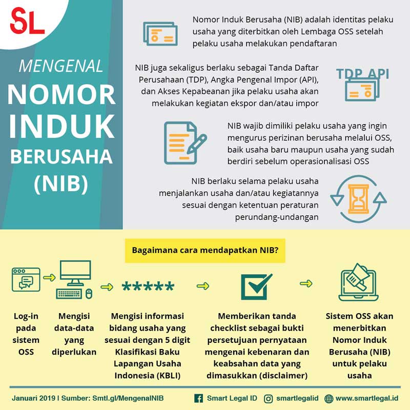 Selain sebagai identitas pelaku usaha, NIB juga sekaligus berlaku sebagai Tanda Daftar Perusahaan (TDP), Angka Pengenal Impor (API) jika pelaku usaha melakukan kegiatan ekspor, dan Akses Kepabeanan jika pelaku usaha akan melakukan kegiatan ekspor dan/atau impor. Hal tersebut diatur dalam Peraturan Pemerintah Nomor 24 Tahun 2018 tentang Pelayanan Perizinan Berusaha Terintegrasi Secara Elektronik.