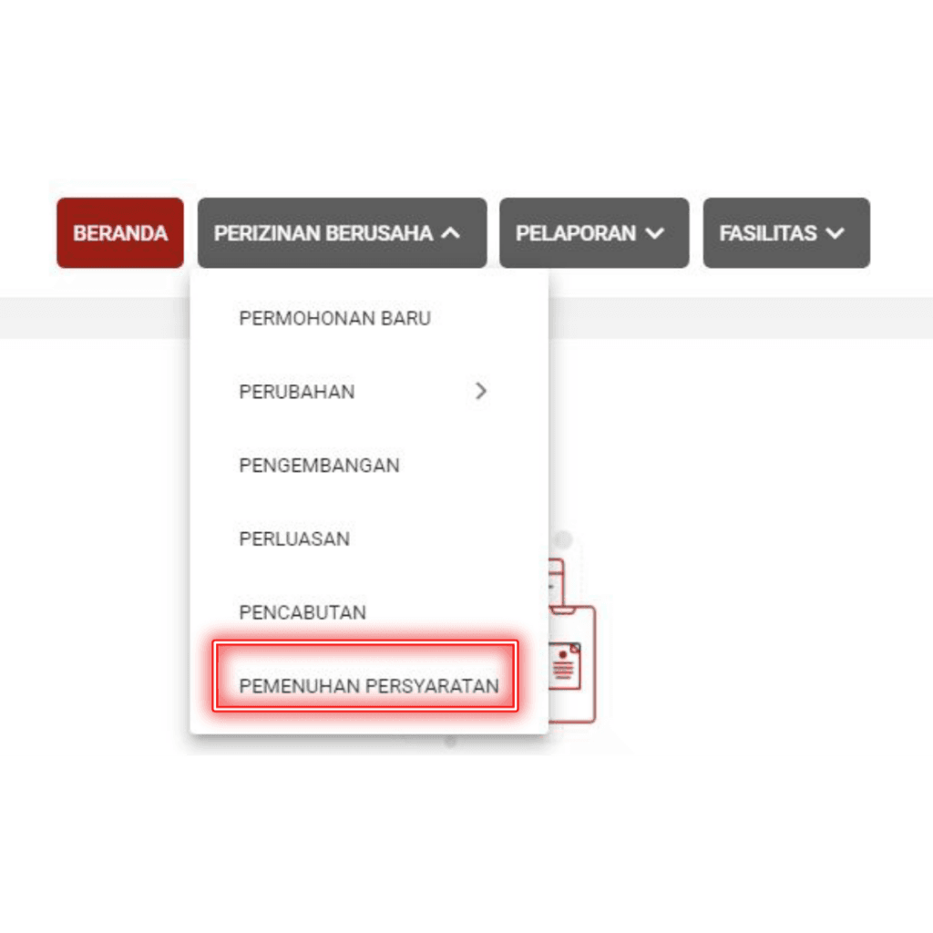 Dalam hal ini, perubahan status pemenuhan dilakukan setelah dokumen persyaratan yang diajukan telah disetujui dan permohonan sedang diproses oleh pejabat berwenang terkait. Setelah status pemenuhan diverifikasi dan disetujui, maka perizinan berusaha terbit. - Perizinan berusaha telah terbit