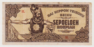 Bahkan di pecahan uang Nippon Teikoku Seihu Sepoeloeh Roepiah (1943) sudah ada gambar Gatotkaca dengan simbol bintang di dadanya.